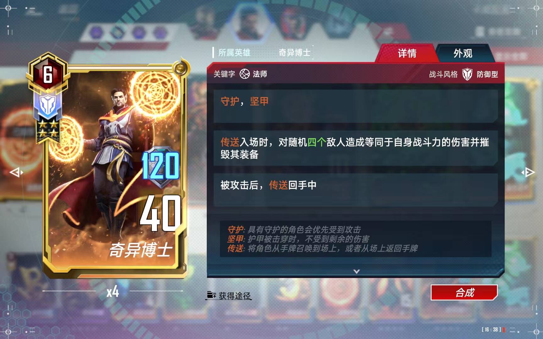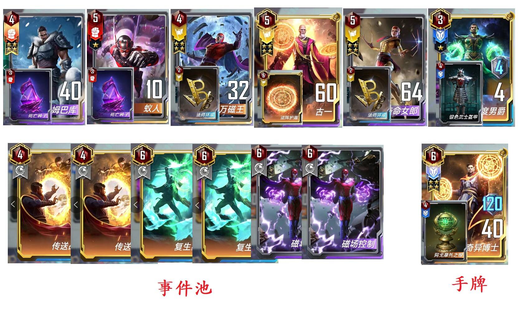 3、找到四张假面以后,或者第六回合准备阶段都结束了还只是三张假面,直接上六级商店以后,就可以集中精力找万磁王、夺命女郎、古一法师组成三联,然后就是找博士,博士放手中用来砸对手的武器,