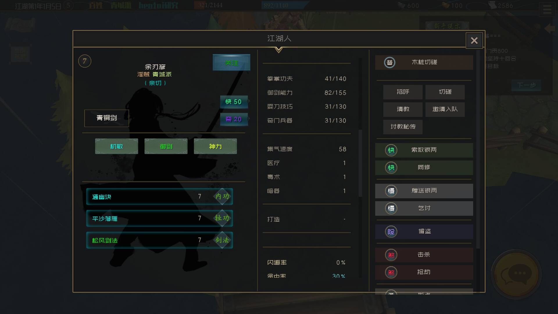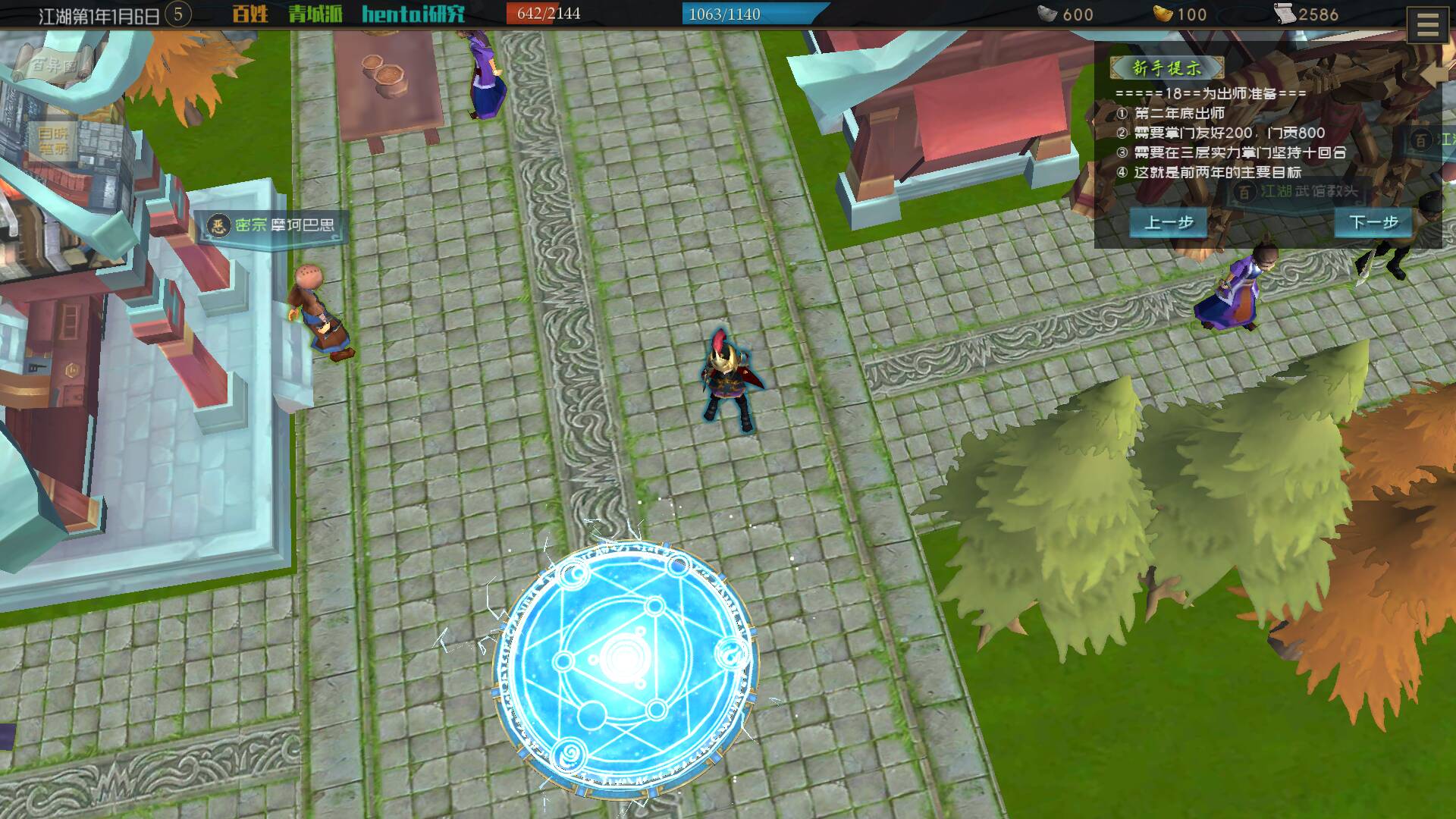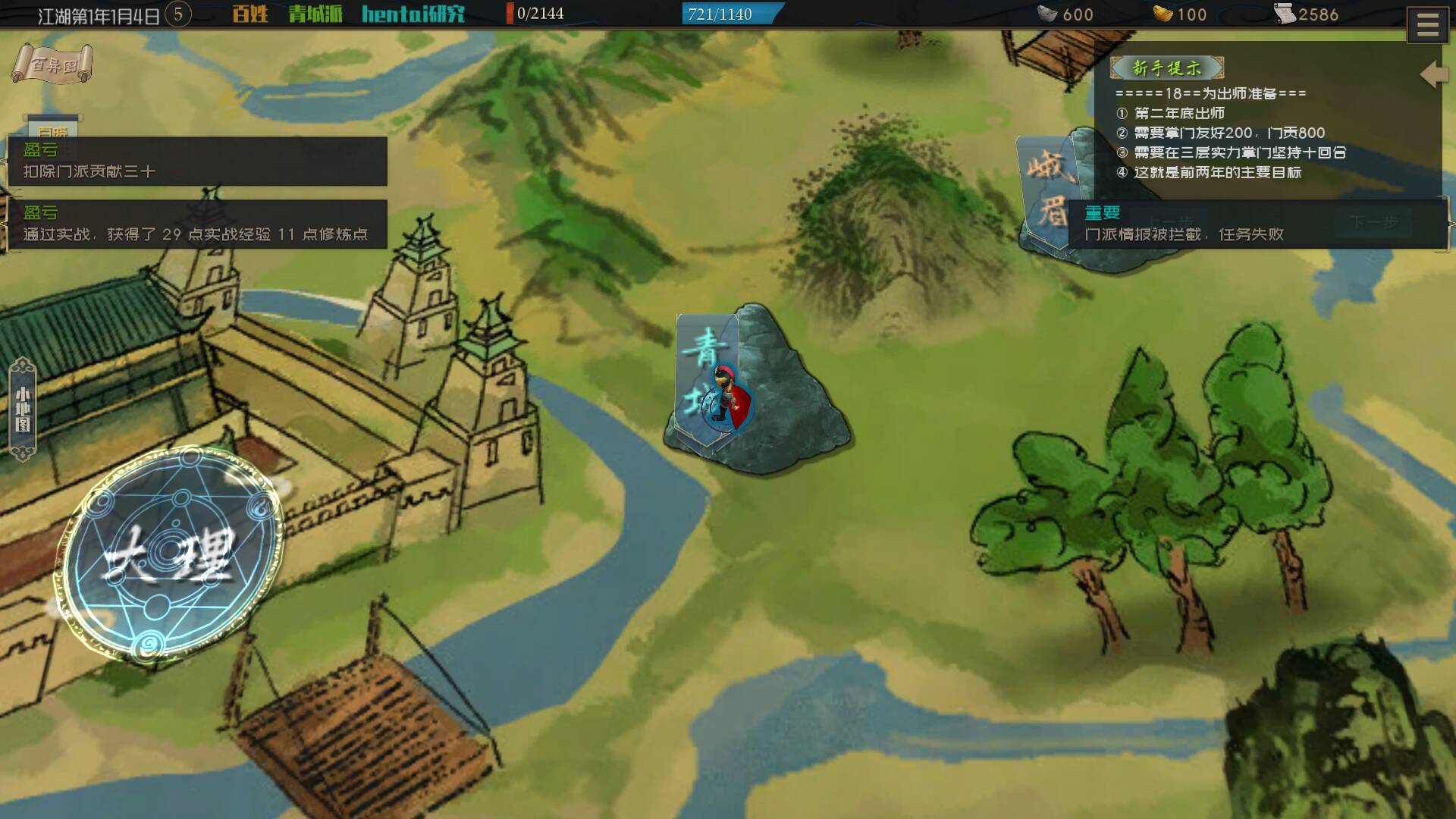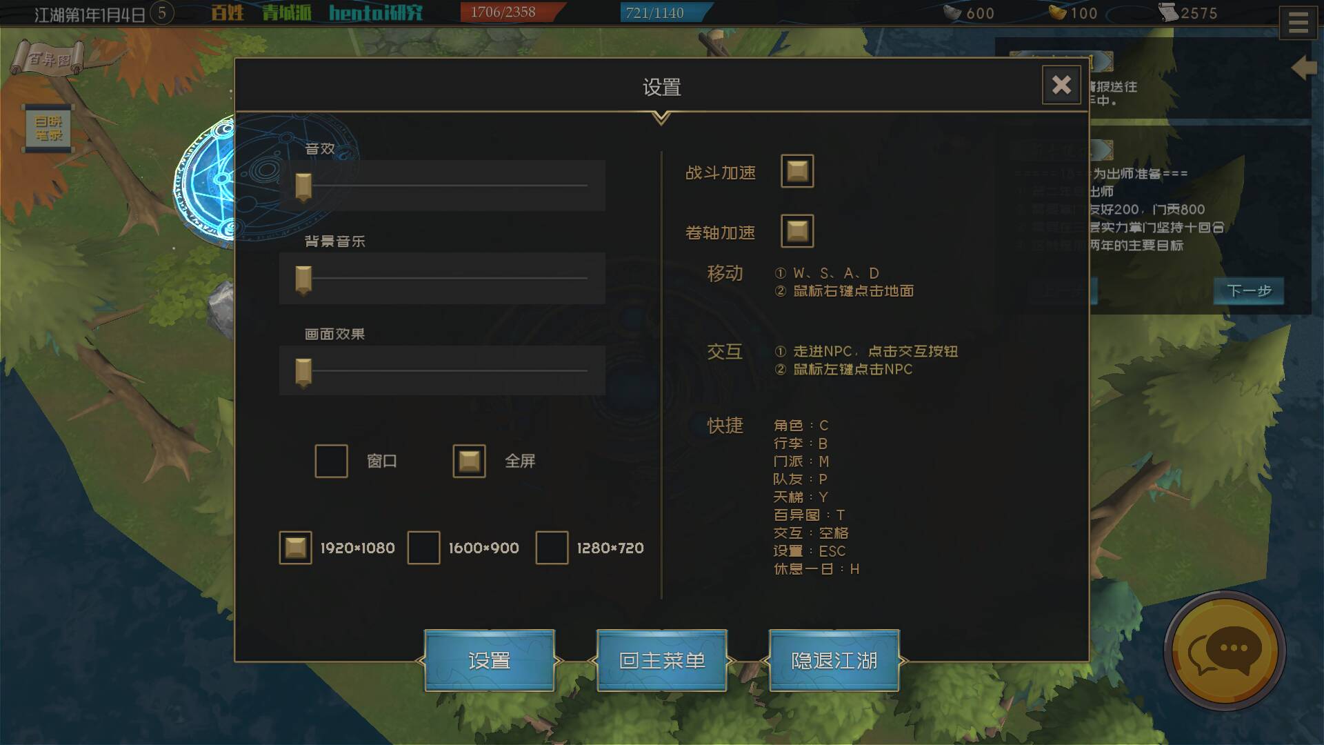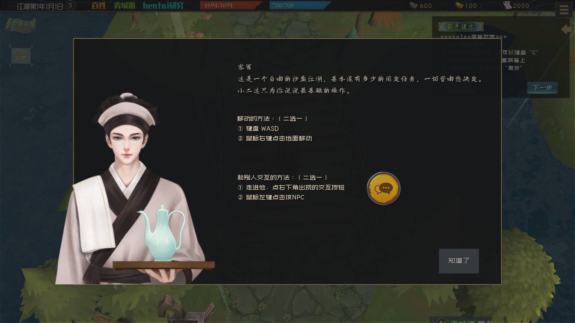 教程上第二步写着可以和交好的人请教武学经验,但是我们门派一个师兄师姐都没有,掌门也不教,我向谁请教呢?没办法,只能闭关修炼。