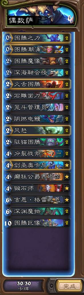 萨满我只玩了偶数萨,进化萨我也是下个月段位重置准备玩玩。至于战吼萨,也是交互感太低,不玩。