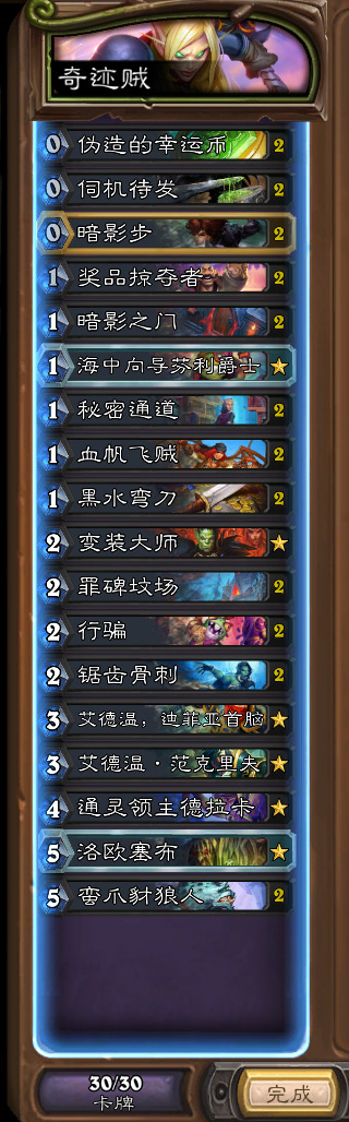牧师形态主要还是任务牧、奇迹牧以及稀有的野猪牧。先说任务牧吧,非常吃牌序的一套牌,打奇迹贼、快攻德优,打法师对面变出晨拥差不多输一半,你任务做的慢或者被换就可以跑了,打德也大差不差,我任务牧是改的B博士大师赛的那套,只带了一张不朽护符,没带魔蝎,满编了盗用身份+旋涡,又带了一张沃金去打德(乐趣&赢点也就是偷古夫加破坏大帝了)。奇迹牧没什么好说的,判断形态也很容易,30血30牌加屯牌,奇迹么,展开对面解不掉就赢了,玩法其他老哥有帖子专门介绍,我也不主玩奇迹牧(key牌不来有点坐牢)就不多说了。野猪牧就比较怪了,作为一个很怕公爵换手牌的卡组(护符野猪换一个就寄)又不是那么怕公爵(到手就会扔或者交易进牌库)。构筑也没变,留牌思路和启动也还是那样,就是要格外防一下公爵换牌罢了。至于假发,基本见不太到,国服沉默太多了,外服瞅着还挺多假发牧。