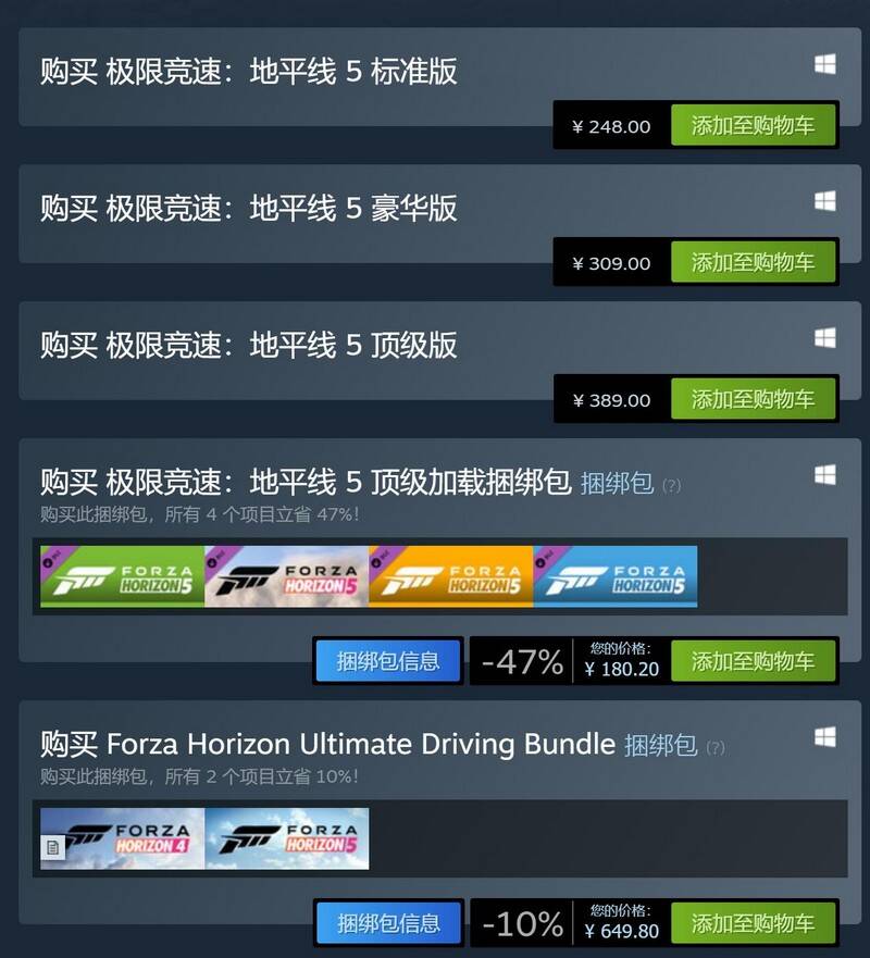 出色的驾驶体验、丰富的文化考据……这就是《极限竞速:地平线5》带来的竞速开放世界,目前车手们可以在steam平台购买标准版、豪华版、顶级版三个版本的游戏,或者以-47%的折扣购买顶级加载捆绑包升级游戏。引爆全网的风火轮DLC后,下一个扩充套件捆绑包也已蓄势待发,现在就加入极限竞速大家庭,驰骋墨西哥竞速世界吧!