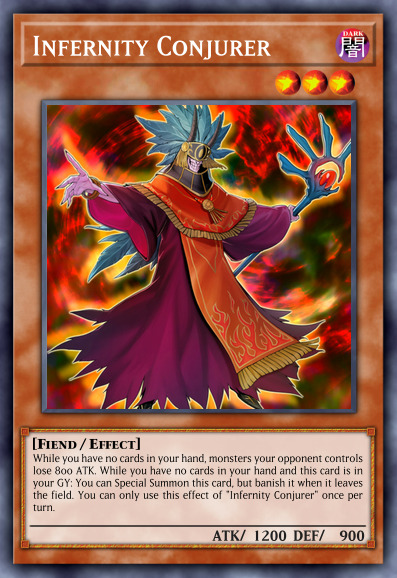效果:这个卡名的②的效果1回合只能使用1次。 ①:只要自己手卡是0张,对方场上的怪兽的攻击力下降800。 ②:这张卡在墓地存在,自己手卡是0张的场合才能发动。这张卡特殊召唤。这个效果特殊召唤的这张卡从场上离开的场合除外。