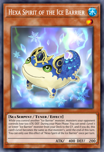效果:这个卡名的①②的效果1回合各能使用1次。 ①:将自己场上的「冰结界」怪兽任意数量解放才能发动。从卡组将解放的数量的等级4以下的「冰结界」怪兽特殊召唤(同名卡最多1张)。 ②:将墓地的这张卡除外,从自己的墓地的怪兽以及除外的自己的怪兽之中以1只「冰结界」怪兽作为对象才能发动。那只怪兽加入手牌。这个效果在这张卡送去墓地的回合不能发动。