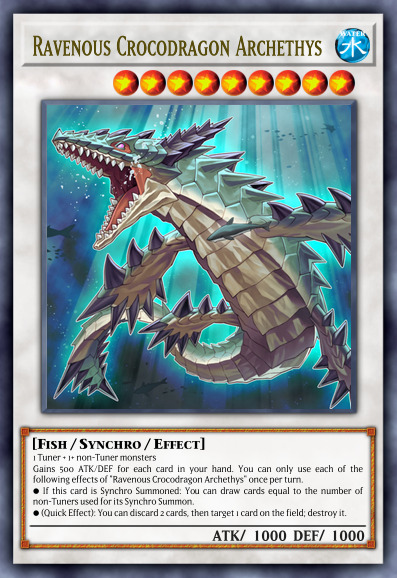 人送外号:电脑堺-鱼鱼。提问:你是从MD里跑出来的吗,鱼鱼?鱼鱼:法法它死得好惨啊!!!咳咳,回归正题,古鱼龙为鱼族泛用9星白,虽然攻守数值极其贫瘠,但是它同调召唤成功的话是可以抽卡的,数量等同于召唤此卡使用的非调整的怪兽数量,保底抽1,容易抽2,DL格子限制,抽3基本不可能。还有一个二速丢两卡炸1卡的效果,比较亏卡,因为鱼鱼一般都是做跳板,所以用到的机会不多。