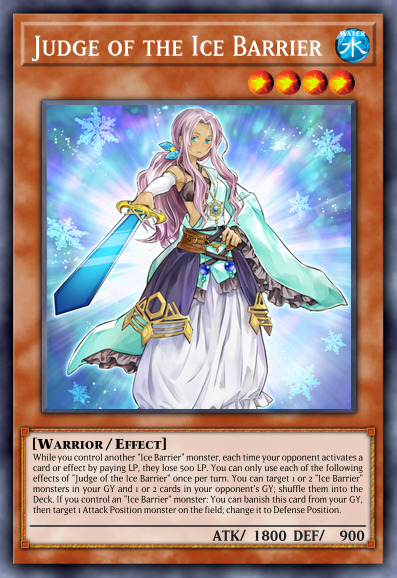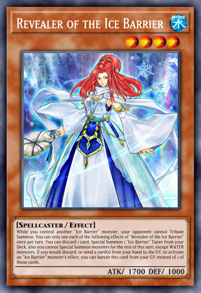 效果: 这个卡名的②③的效果1回合各能使用1次。 ①:只要自己场上有其他的「冰结界」怪兽存在,对方不能上级召唤。 ②:丢弃1张手卡才能发动。从卡组把1只「冰结界」调整特殊召唤。这个效果的发动后,直到回合结束时自己不是水属性怪兽不能特殊召唤。 ③:自己为让「冰结界」怪兽的效果发动而把手卡送去墓地的场合或者丢弃的场合,可以作为那1张卡的代替而把墓地的这张卡除外。