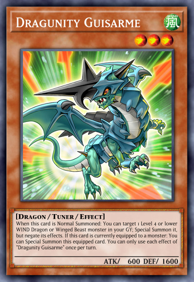 效果:效果·调整:这个卡名的①②的效果1回合各能使用1次。 ①:这张卡召唤成功时,以自己墓地的风属性·4星以下的1只龙族或者鸟兽族的怪兽为对象才能发动。那只怪兽特殊召唤。这个效果特殊召唤的怪兽的效果无效化。 ②:这张卡当作装备卡使用而装备中的场合才能发动。装备的这张卡特殊召唤。