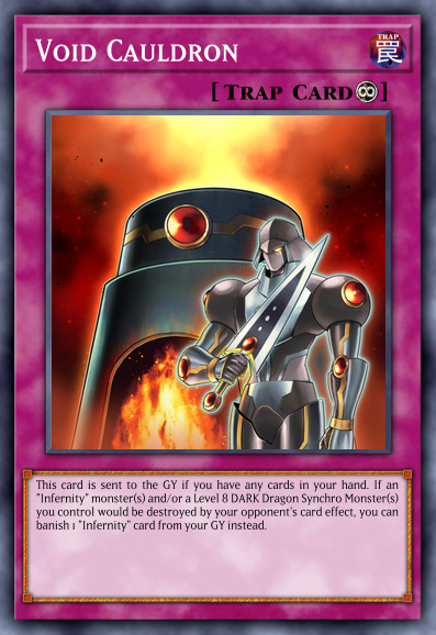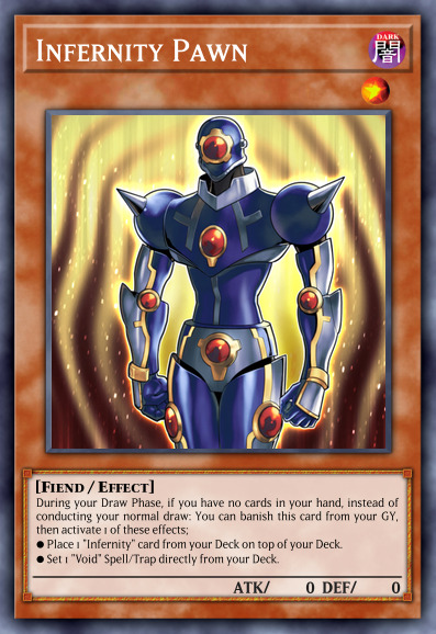 效果:①:自己手卡是0张的场合,自己抽卡阶段可以作为进行通常抽卡的代替,把墓地的这张卡除外,从以下效果选择1个发动。 ●从卡组选1张「永火」卡在卡组最上面放置。 ●从卡组选1张「炼狱」魔法·陷阱卡在自己场上盖放。