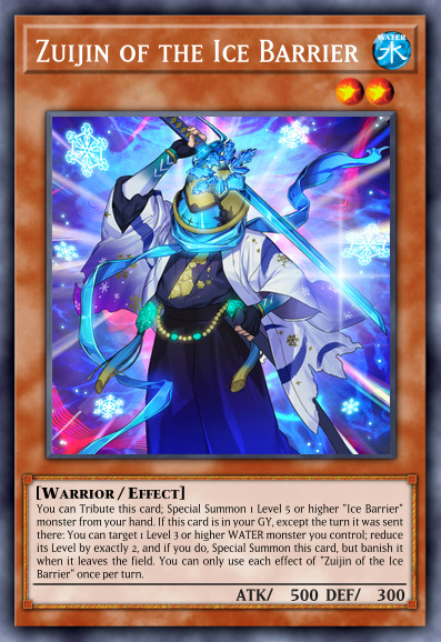 效果:这个卡名的①②的效果1回合各能使用1次。 ①:把这张卡解放才能发动。从手卡把1只5星以上的「冰结界」怪兽特殊召唤。 ②:这张卡在墓地存在的场合,以自己场上1只3星以上的水属性怪兽为对象才能发动。那只怪兽的等级下降2星,这张卡特殊召唤。这个效果特殊召唤的这张卡从场上离开的场合除外。这个效果在这张卡送去墓地的回合不能发动。