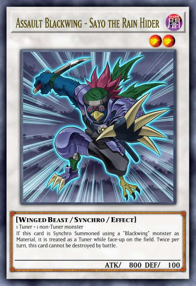 ①:「黑羽」怪兽为素材作同调召唤的这张卡当作调整使用。 ②:这张卡1回合最多2次不会被战斗破坏。