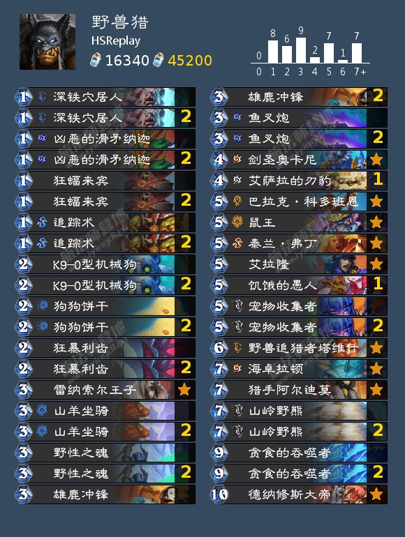 大数据里胜率最高的任务猎的构筑是满编了所有过牌的,丹巴达尔碉堡+狂怒之嚎+多系施法者可以在做完任务后补充足够数量的手牌。