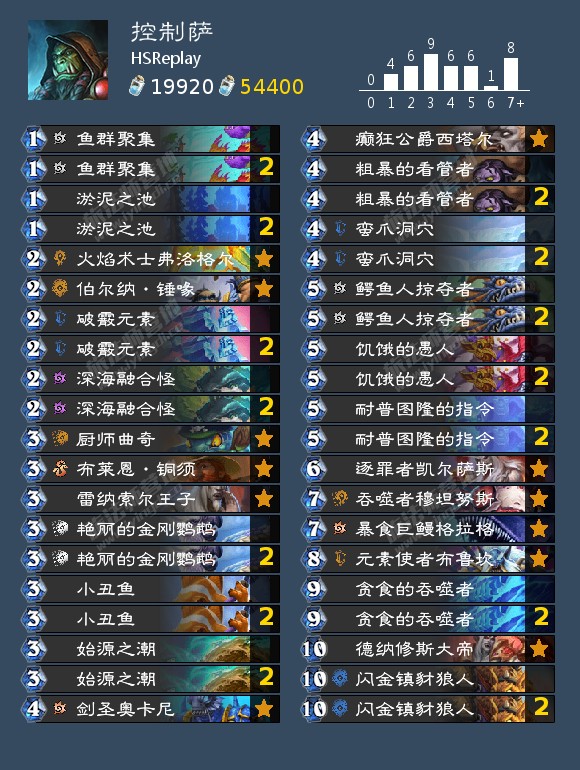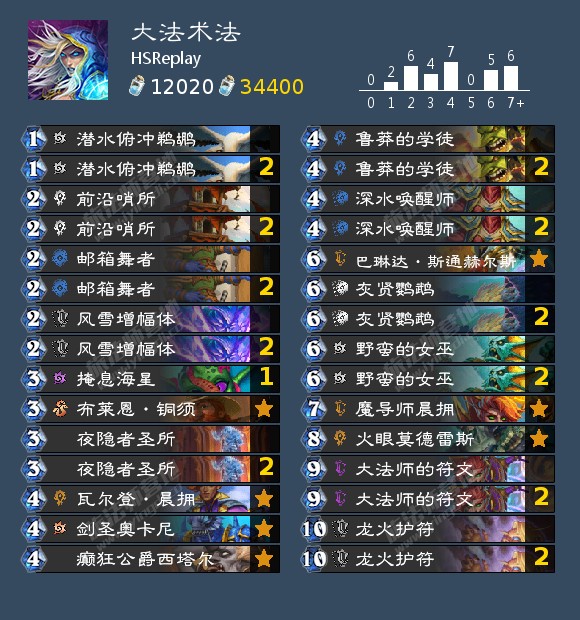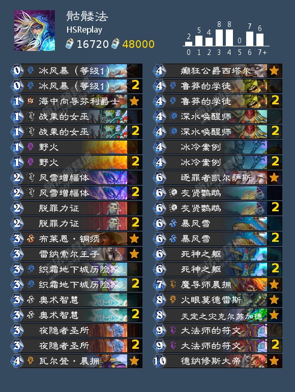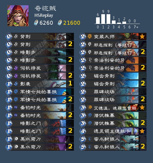 因为邪恶图书馆的削弱,现在大数据里胜率比较高的卡组是这套偏控制的小鬼术,利用小鬼体系的邪恶图书馆+灾祸降临过牌。中后期靠暗脉女伯爵召唤生物的亡语配合诅咒牌塞直伤获胜。