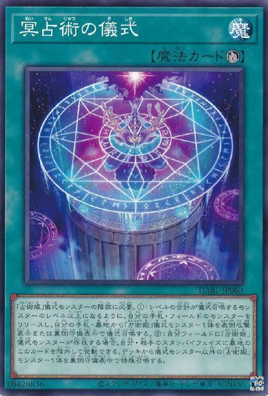 和圣占术仪式一样,这是一张对应冥占术姬塔罗特雷斯的本家仪式,但非常可惜的效果文本并不是冥占术姬塔罗特雷斯,导致不能像圣占术那样没法被事前准备检索。