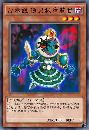 占术姬的特点为仪式召唤和反转效果,这张卡的效果都将其很好的体现出来。虽然此卡的卡图给人一种4星的感觉,但由于本家仪式为9星,所以此卡也是9星。