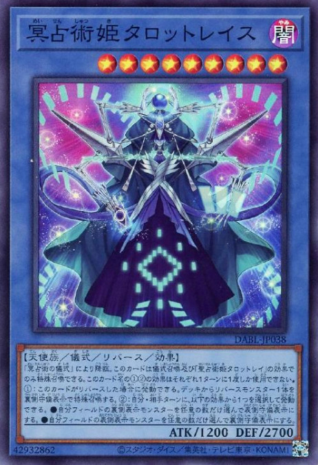 以「冥占术的仪式」降临。 这张卡用仪式召唤以及「圣占术姬塔罗特雷斯」的效果才能特殊召唤。这个卡名的①②的效果1回合各能使用1次。