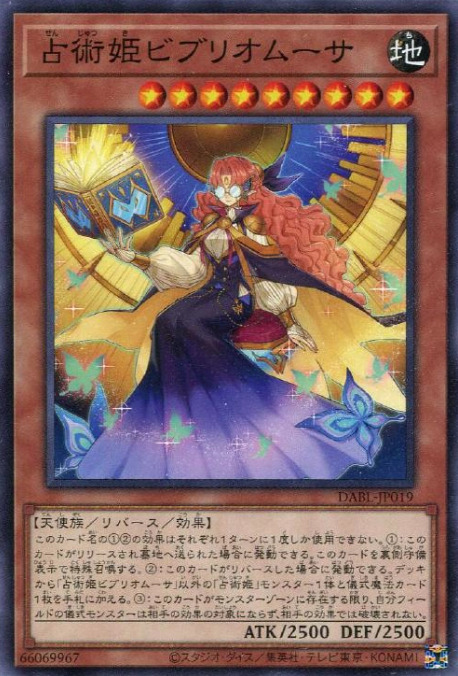 ②:自己场上有「占术姬」仪式怪兽存在的场合,自己·对方的准备阶段把墓地的这张卡除外才能发动。从卡组把仪式怪兽以外的1只「占术姬」怪兽里侧守备表示特殊召唤。