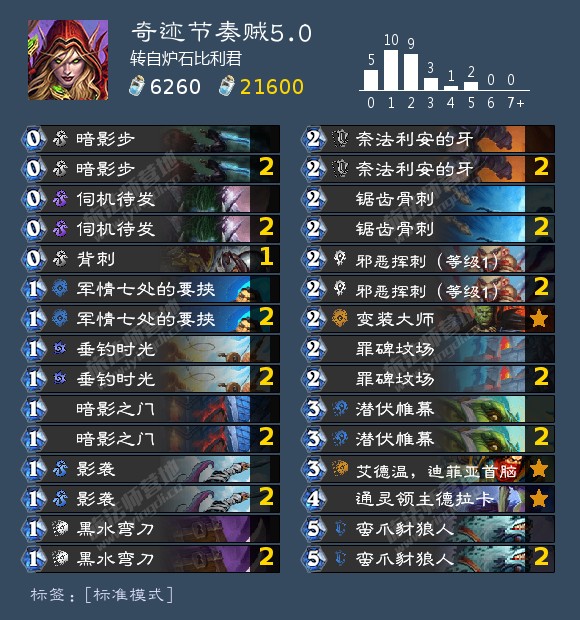貌似最近标准炉石很少有大佬介绍卡组详细打法了,所以趁着月初且削弱补丁未上线,本人来安利一下有点难度、月初上分效率很高的奇迹节奏贼。做抛砖引玉,欢迎指正讨论~