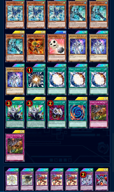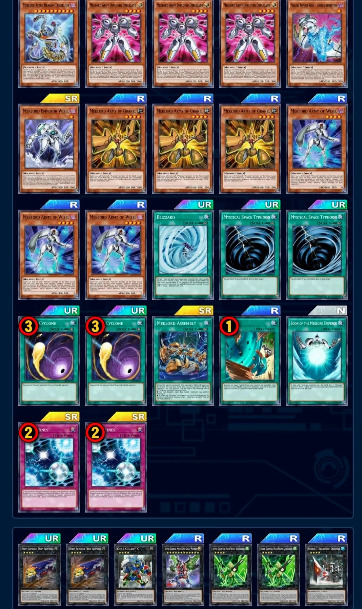 因为技能自肃,卡组构筑已趋于固定,三新宇,三液态,三天空,一烈焰,一融合,一超融合已经成了基底,其他要改动的则是奇迹融合,新宇融合以及坑的数量,看玩家自己喜好决定。