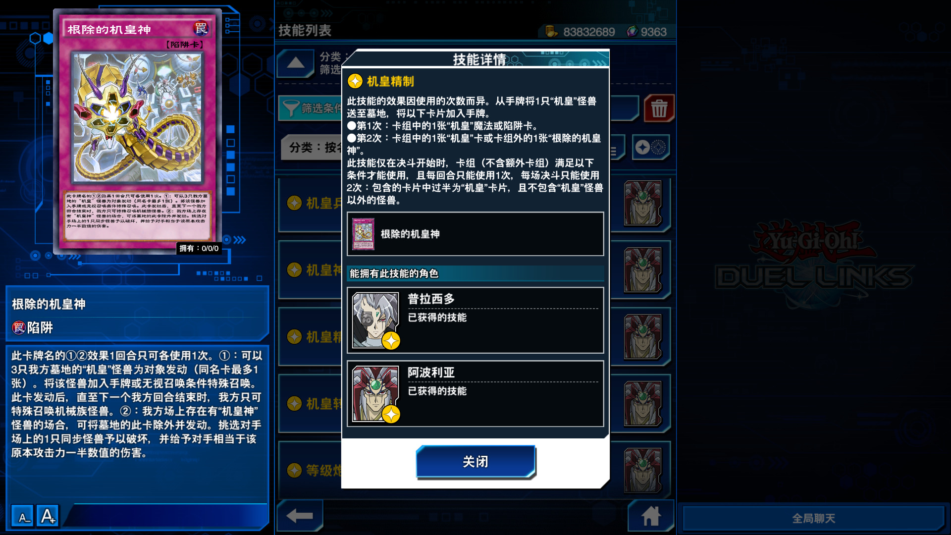 技能可以让机皇帝卡组稳定一卡做出R4(技能检索创出再检索助奏,助奏自爆检索两只下级),先攻赐予在手还能抽二,可以做出康一次魔法的神智,康对方的融合,发芽来迫使对方停牌。