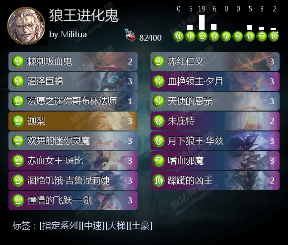 进化鬼是围绕进化体系运作的中速,擅长快速堆叠进化数,并能在堆够5~6次后高效抢血,通过分段斩杀甚至OTK取胜。
