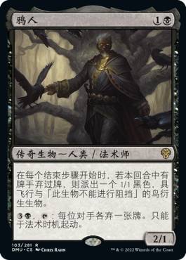 鸦人是纯黑内战的核心单卡,在对抗娜娜时无论是他的弃牌异能让我们造鸟来攻击旅法,还是他的牺牲异能可以用廉价的鸟来封印都十分好用。本身他自己的启动异能也是一张站住场便能源源不断赚卡的手段,所以我十分喜欢这张多明的新卡,不过他在主牌下1还是下2需要根据环境来调整,不过主备加一起2张是没有问题的。