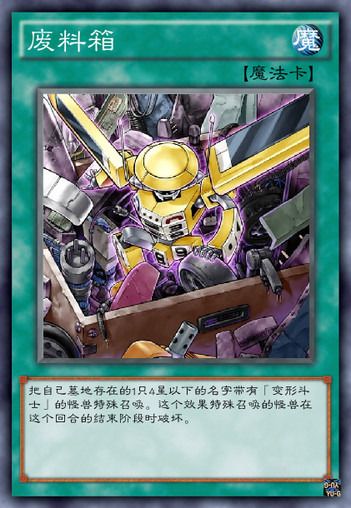 这张卡在当时出的时候就被玩家们好奇是不是搞笑来的。拥有回收本家魔陷的能力却意外的是一张反转卡,和本家格格不入,效果延迟,更重要的是扁豆本家的部分魔陷是没有扁豆字段的,尤其是废料箱这种重要卡,而很多的带字段的魔陷又几乎都是**卡,因此这张卡也随之而然退出了构筑。