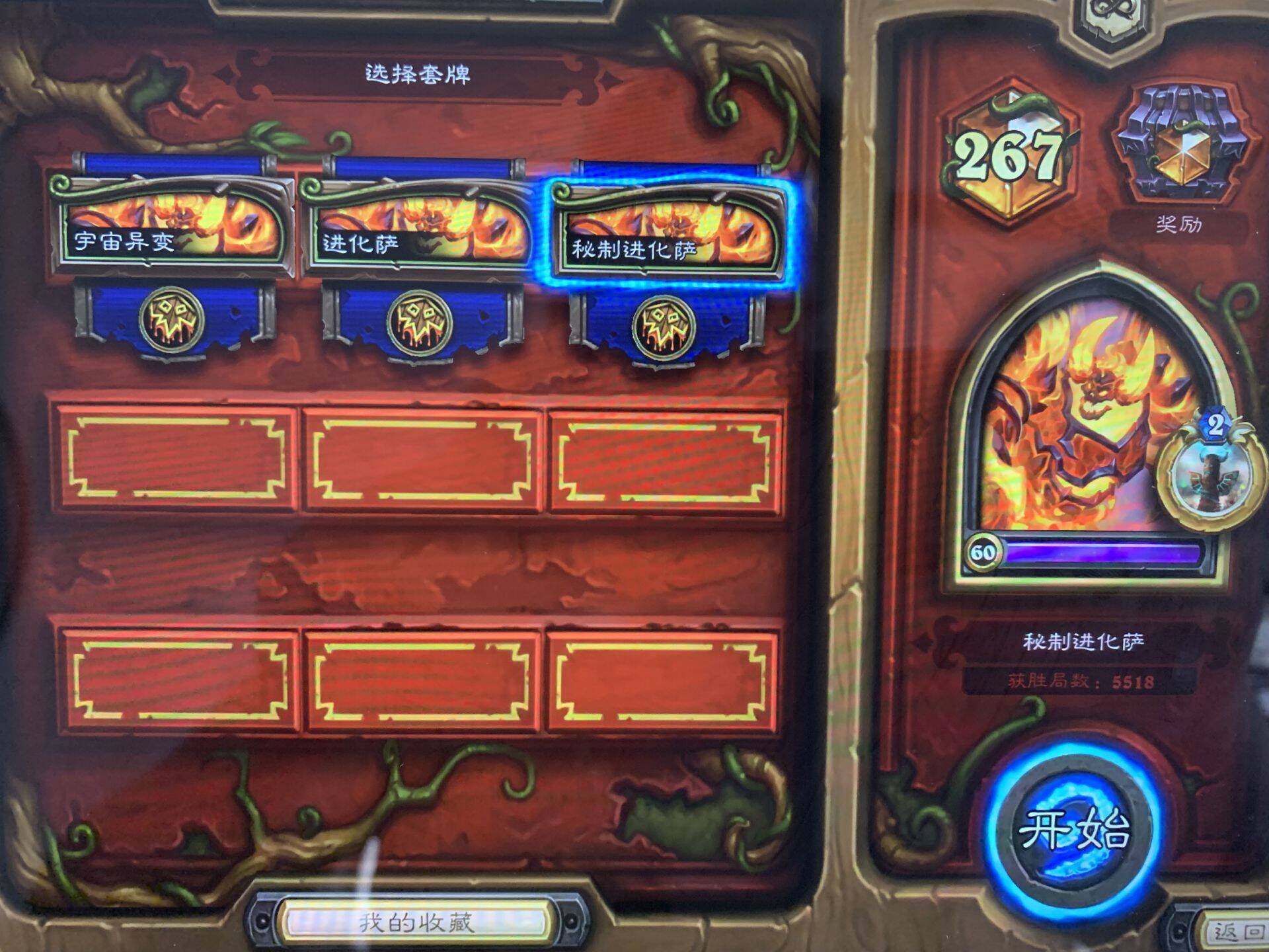 厚度体系:沙德沃克 德纳修斯大帝 布鲁坎 导师火心(我见很多进化萨玩家都不带沙岛的,但是由于我所处的环境很多宇宙暗牧和宇宙德,所以我个人是带沙岛和大帝的。)