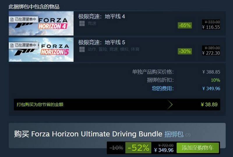 目前《极限竞速:地平线》4、5两代作品均已在steam上开启折扣大促,4代标准版折扣-67%,豪华版、终极版-65%。只要100元出头的价格,你就能获得原价333元的终极版游戏!