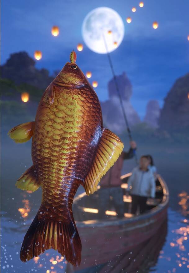 除了“看花灯”以外,“赏月”也是我们不能错过的环节。《钓鱼大对决》还在中秋佳节为我们带来了三种特殊的鱼类,分别象征着:月亮、玉兔、花灯。
