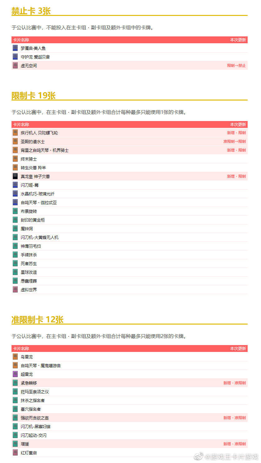 游戏王卡片游戏决斗怪兽(简体中文版)禁止·限制·准限制卡表公告