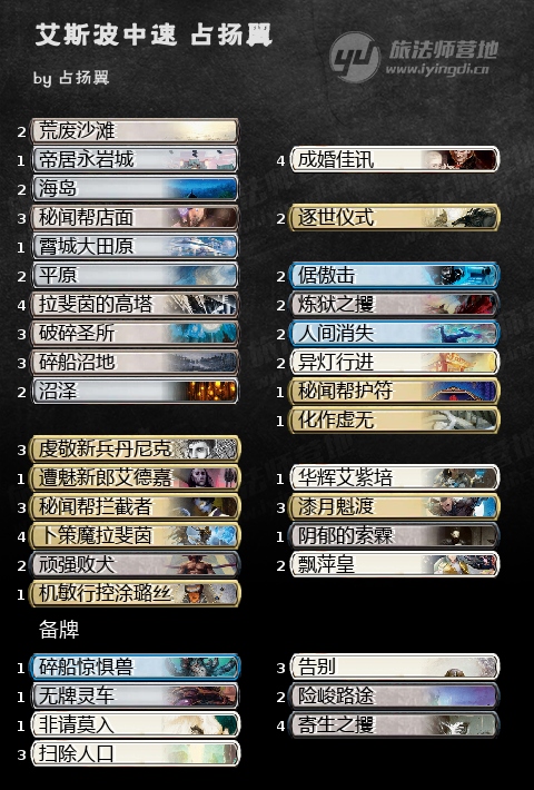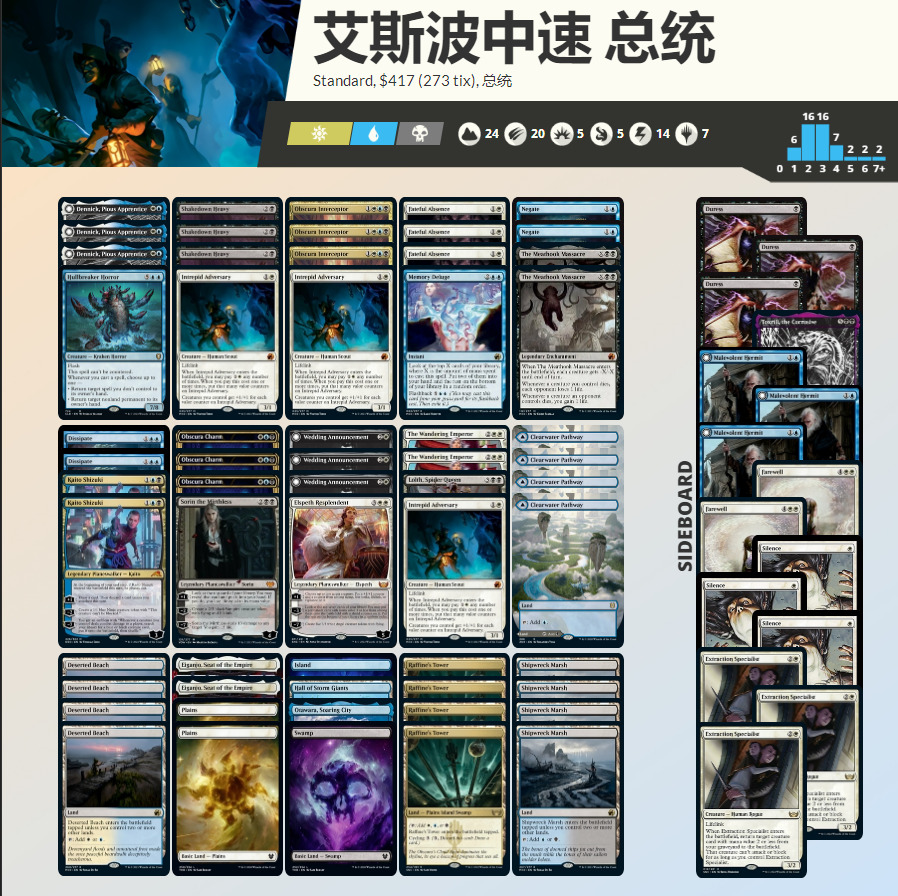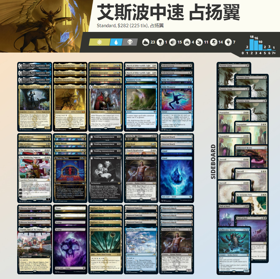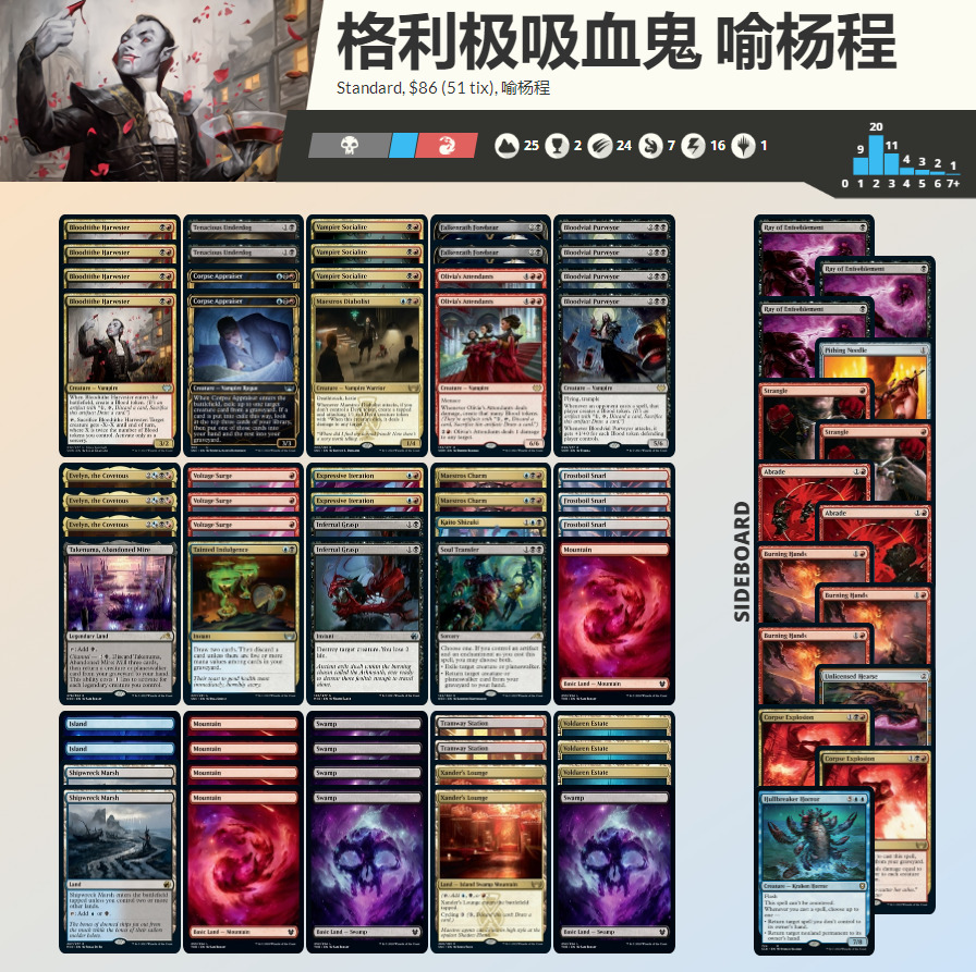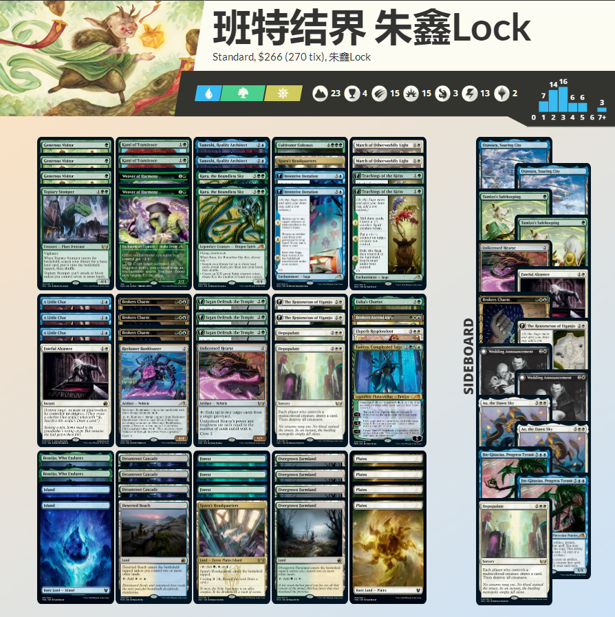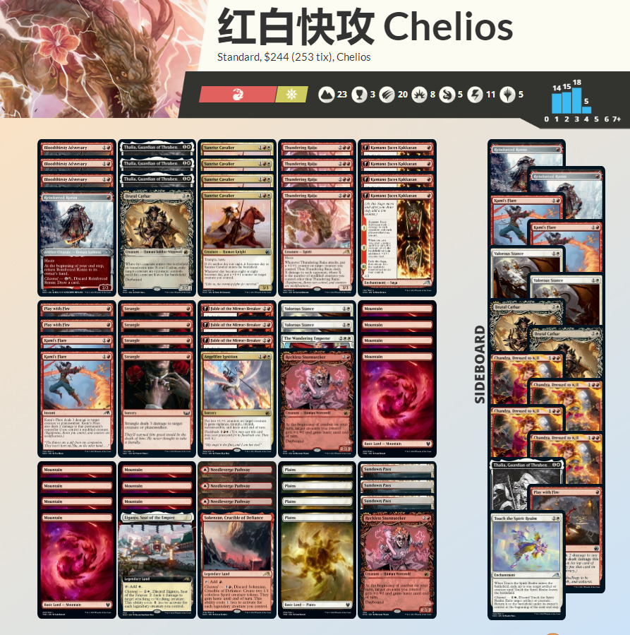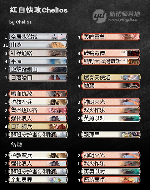 第二次打构筑赛,也不清楚本地的环境,赛前练牌的时候发现很多人都有364的汉子和23系命小哥,都不在戏火作乐的射程内,就进主了两张神明火光和一张英勇以对。又得到逍遥老师指点,换了三张破镜奇谭进去,最后成了这个奇奇怪怪的样子。