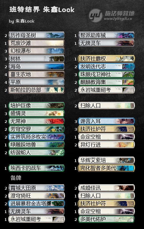 此前班特结界完败 于是回家以后对套牌进行了大手术 替换进来的几张牌都成了今天的关键牌 包括 命定空馆 多枚实 发明迭代志 基本在对控制与快攻都能应付 面对红白快攻有清场面对艾斯波控制有中期压力 当然在对阵格利极吸血鬼的套牌完全发挥了这套牌的玩法与机制 总的来说 自己组的这套班特结界对阵环境内的大部分套牌都还能打个来回 对自己的这套原创还是非常满意的🤗