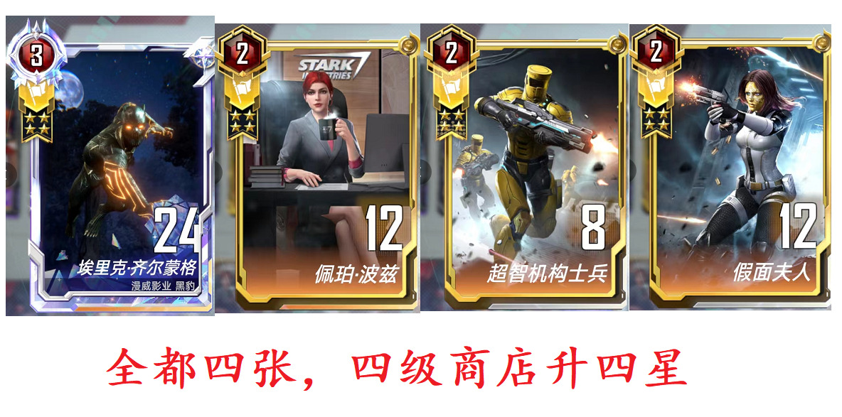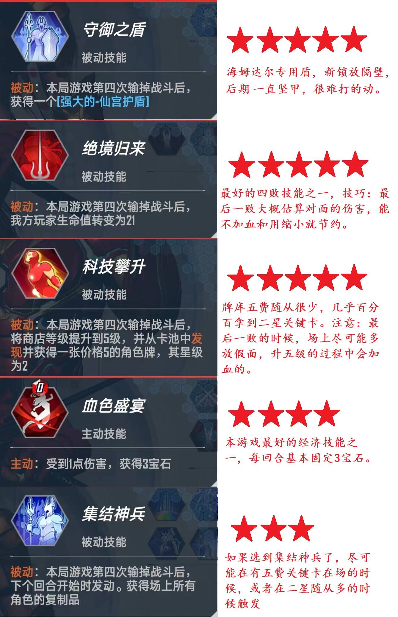 3、这个卡组不一定非要卡三本,到了第五回合以后,如果有升四星的卡,可以在场上尽可能多假面的前提下升级到四级商店,拿五级的奖励卡,刀锋、新锁、彩虹传送任意拿一个就算是很好的奖励了;