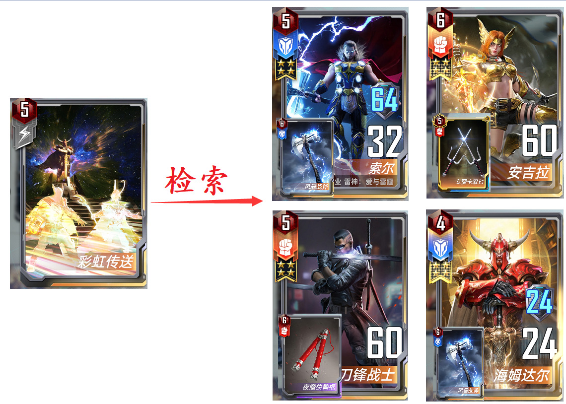 3、在四败的前提下,使用彩虹传送检索本卡组的关键卡,用正义感召检索海姆达尔;