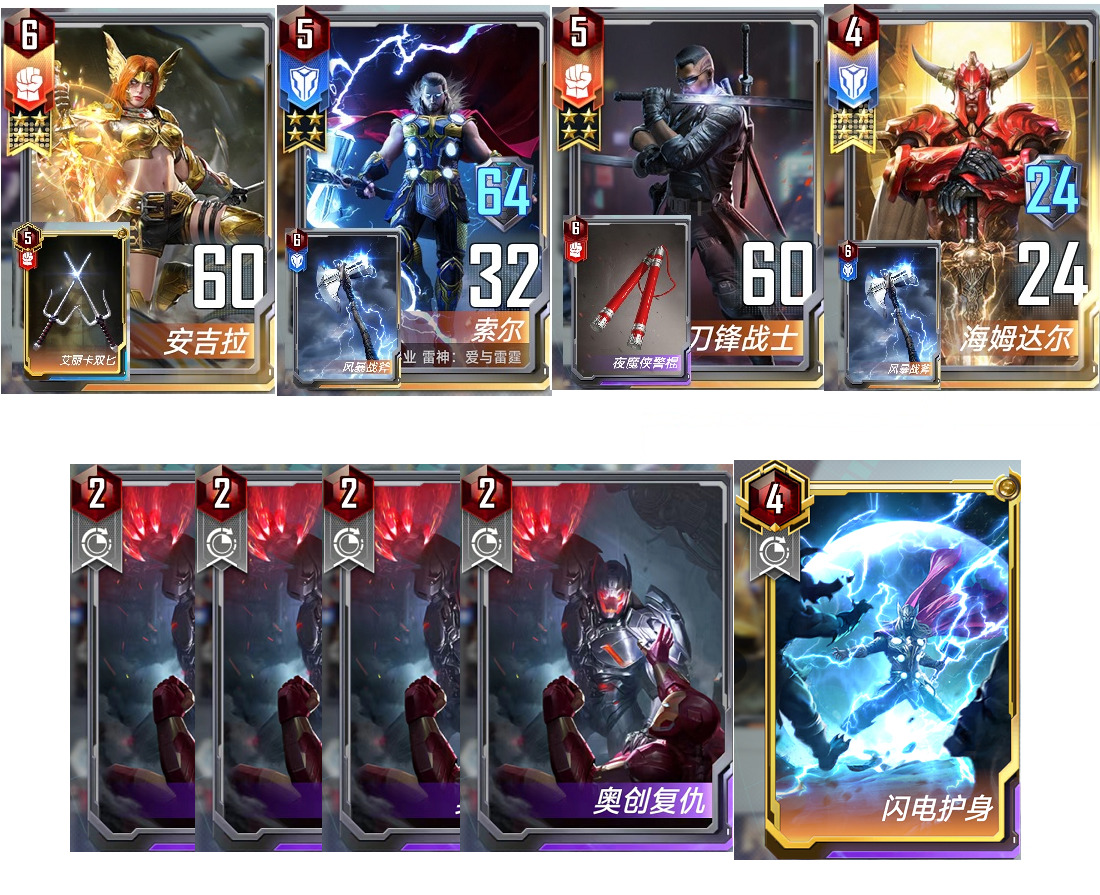 本卡组是开放型打法,场上所有的随从都是这个游戏质量最高的随从,而且所有随从都能享受到四败加成效果,根据对手的阵容来调整场上随从的位置: