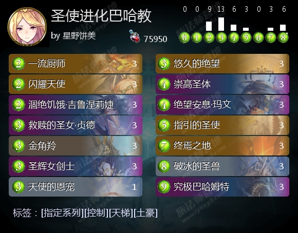 厨师、圣使提升血上限,爆能圣辉回血、护脸,瞬召巴哈压缩对手资源——这套牌经常能在后期立于不败之地。
