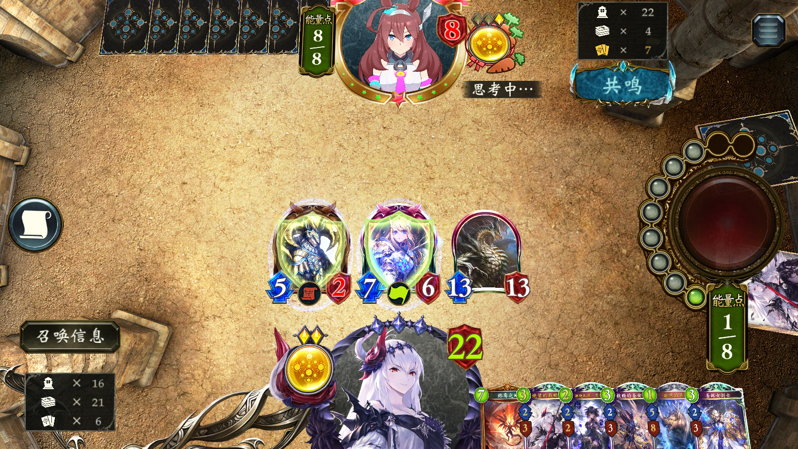 【第8回合】优先爆能圣辉。但如果无法回费,也可采取其他打法以瞬召巴哈。苟活压力很小的话,也不必爆能圣辉,优先使用终地。
