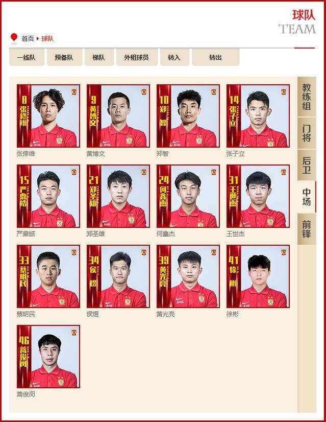 广州队一线队球员名单新增: