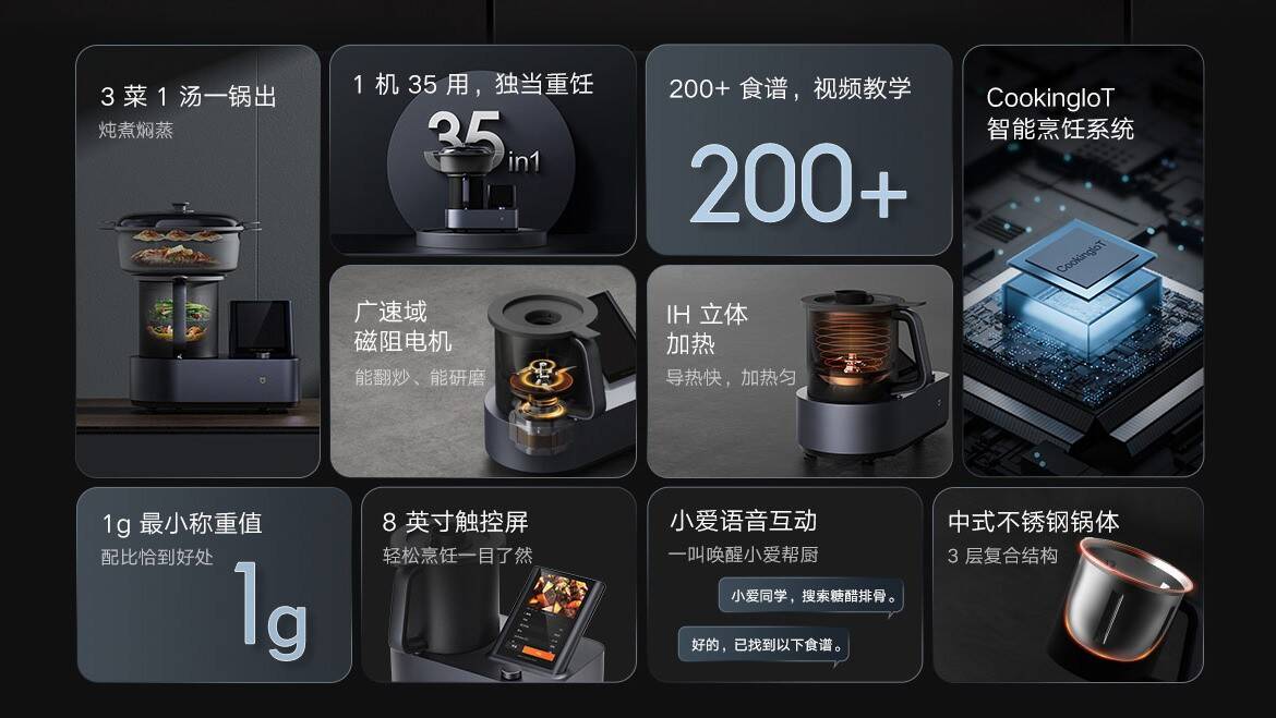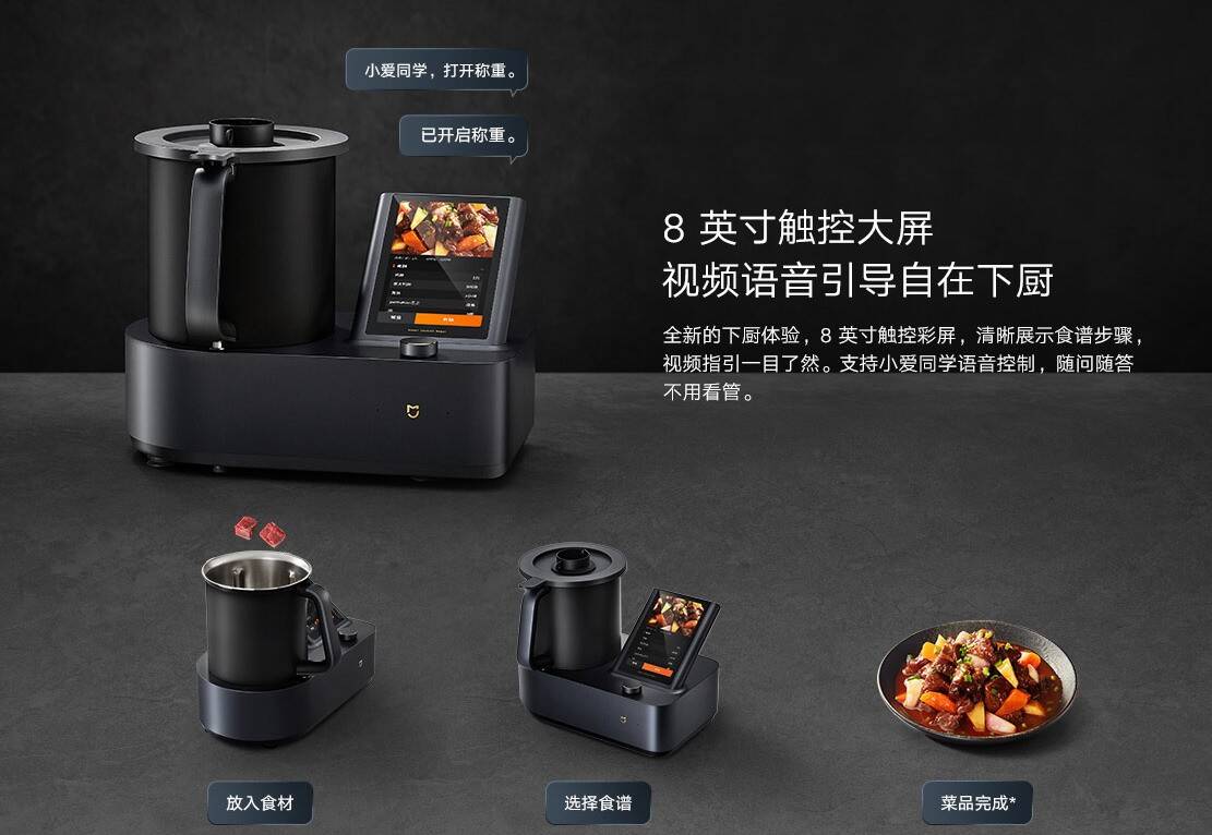 今日(9月1日)小米米家烹饪机器人正式发布,预售价6999元,订金100元可抵1100元,到手价5999元。