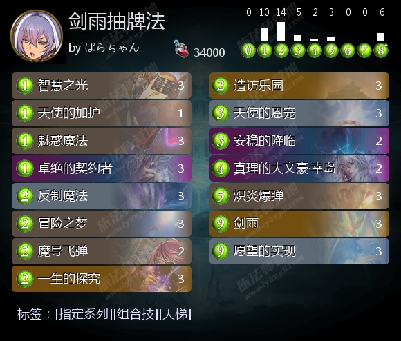 而在剑雨加入后,契约者也凭借费用低廉的优势在竞争中战胜了管弦魔法师。虽然后者能通过被造访乐园检索而提升上手率,但同时也会影响造访稳定抽取幸岛+一生的探究。