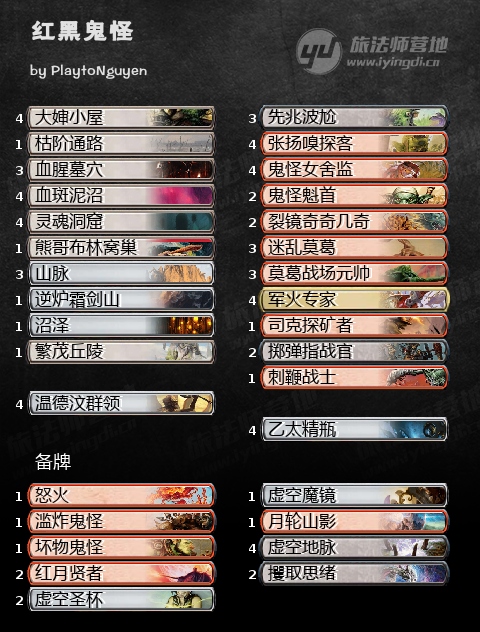 上周摩登Challenge由这套红黑鬼怪席卷,这个新的鬼怪头子能赚牌+膨胀增强fair部分,也能让张扬嗅探客+先兆波尬组合技更为顺畅(张扬嗅探客在场,先兆波尬找裂镜奇奇几奇,复制无限个自己,最后一下复制先兆波尬找掷弹指战官,全掰了),这样在被打断时造出的一堆已经横置的衍生物就有用了,都可以变成牌库顶牌,配合司克探矿者就能都用出来。