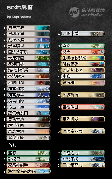 在最新一周的挑战赛牌表中,有一个使用4张地脉束缚的80版本获得了亚军。个人认为是一个非常合理的构筑。(绝对不是因为自己低价买入了一组才这么说的,绝对不是。)