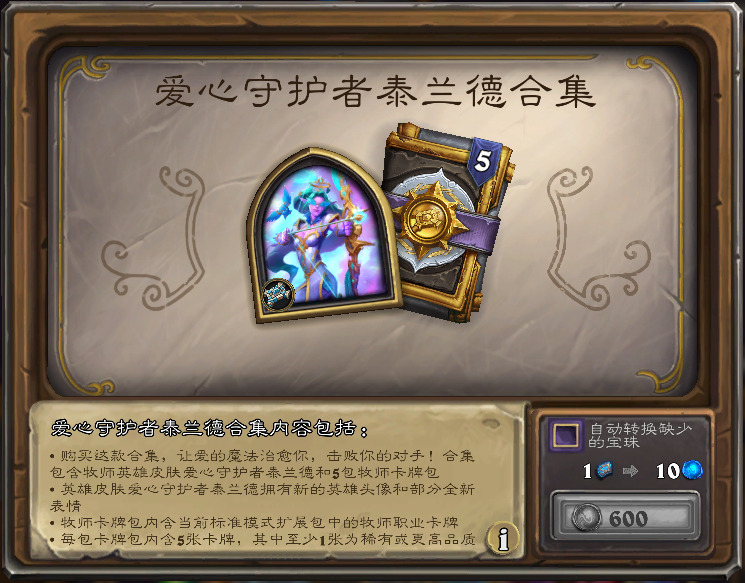 含构筑牧师新皮肤“爱心守护者泰兰德”和5牧师包,国服售价60。