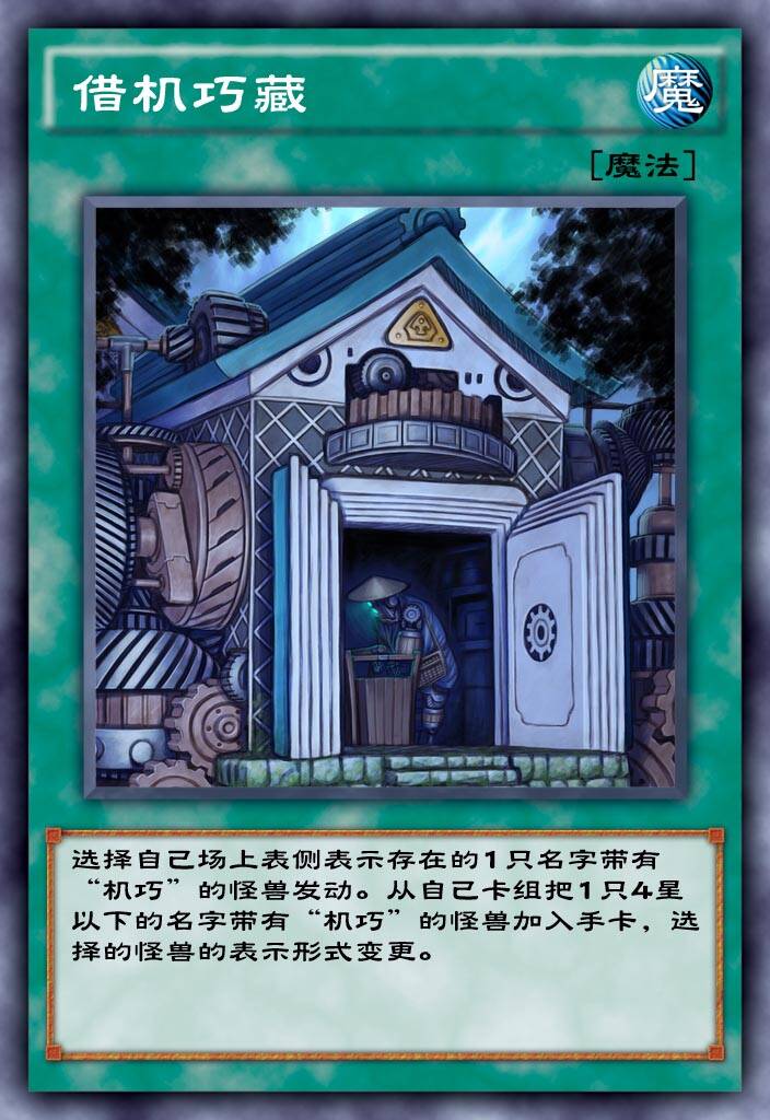 选择自己场上表侧表示存在的1只名字带有「机巧」的怪兽发动。从自己卡组把1只4星以下的名字带有「机巧」的怪兽加入手卡,选择的怪兽的表示形式变更。 强力的赚卡点,本身可以被一七七检索,本家非常关键的卡片,建议抽2-3.