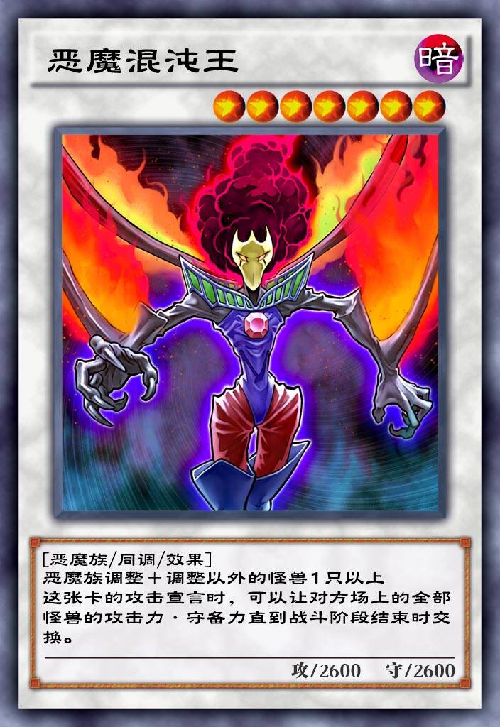 这张卡的攻击宣言时,可以让对方场上表侧表示存在的全部怪兽的攻击力·守备力直到战斗阶段结束时交换。 要求恶魔族协调,并不是一张泛用7星白,效果改变对面攻守也没什么用.
