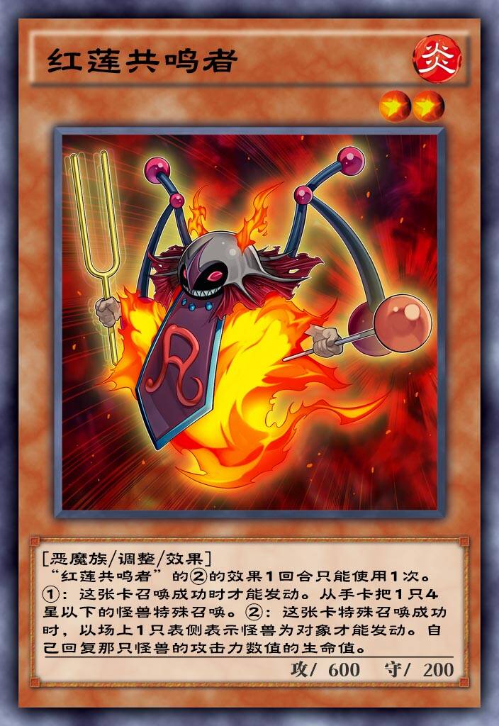 这张卡召唤·特殊召唤成功时,自己场上没有其他怪兽存在的场合才能发动。从自己的手卡·墓地选1只3星以下的恶魔族协调特殊召唤。 可以复活墓地的红莲共鸣者进行伪一卡同步,非常不错的卡片,4星也可以被共鸣者直接特召下来.