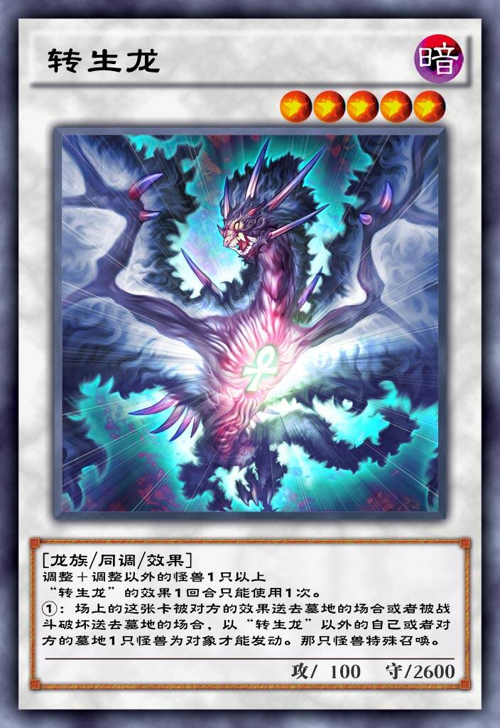 场上的这张卡被对方的效果送去墓地的场合或者被战斗破坏送去墓地的场合,以「转生龙」以外的自己或者对方的墓地1只怪兽为对象才能发动。那只怪兽特殊召唤。 泛用5星白,守备力比较高,可以苟命,也可以作为高星同步的跳板,抽1张即可.