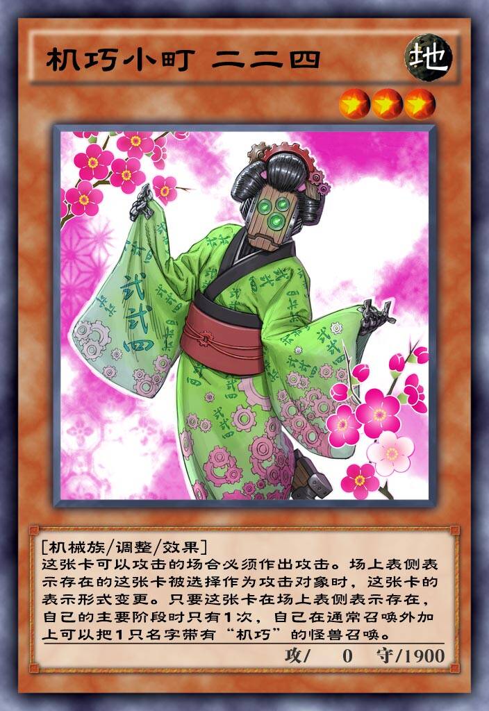 只要这张卡在场上表侧表示存在,自己的主要阶段时只有1次,自己在通常召唤外加上可以把1只名字带有「机巧」的怪兽召唤。 二二四可以增加一次我方本回合召唤机巧怪兽的次数,利用此效果通常召唤机巧无双 八一八,两张便可以进行同步召唤机巧将军无零,可以发动其效果,特殊召唤卡组的机巧怪兽进行展开,但是由于没有给机巧法师九七六三 ,机巧先攻并不能进一步做场,比较尴尬.