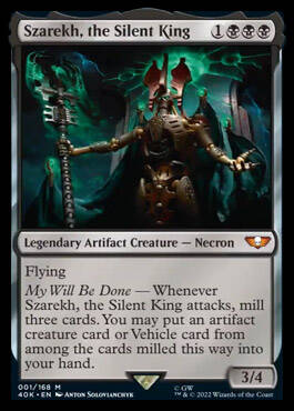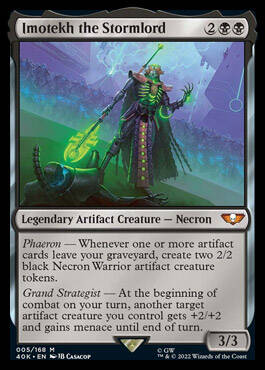 每当一个或多个神器离开你的坟墓场时,派出两个2/2黑色Necron战士神器衍生生物。