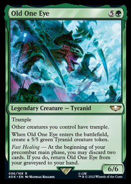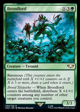 当~进战场时,派出一个5/5绿色Tyranid衍生生物。