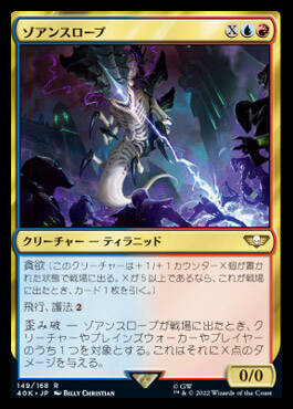 | Ravenous (This creature enters the battlefield with X +1/+1 counters on it. If X is 5 or more, draw a card when it enters.) Flying, ward 2 When Zoanthrope enters the battlefield, it does X damage to any target. |